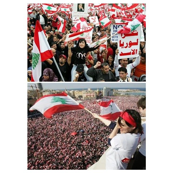 🔹 14 مارس 2005: دقیقا یک ماه بعد از ترور رفیق حریری و شش روز بعد از گردهمایی خیابانی حامیان حزبالله لبنان و سوریه، این بار مخالفان یک گردهمایی در بیروت برگزار کردند. بانیان این گردهمایی بعدتر نام ائتلاف خود را "ائتلاف 14 مارس" گذاشتند.