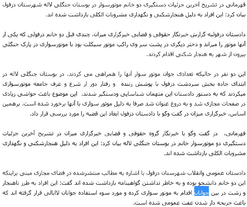دیدن اعتراضا نسبت به اون ۲تا دختر موتورسوار زیاد شده، میگن دلیل دستگیری شون حمل مشروبات الکلی بوده