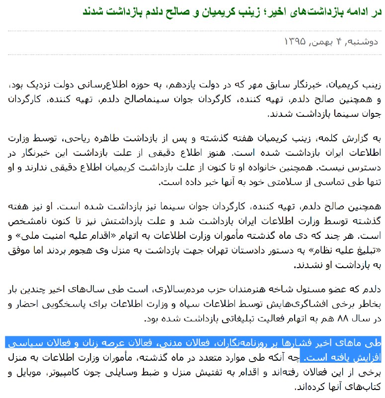 زینب کریمیان، خبرنگار سابق مهر و صالح دلدم، تهیه کننده و کارگردان سینما بازداشت شدند t.co/wzWN9FELdX