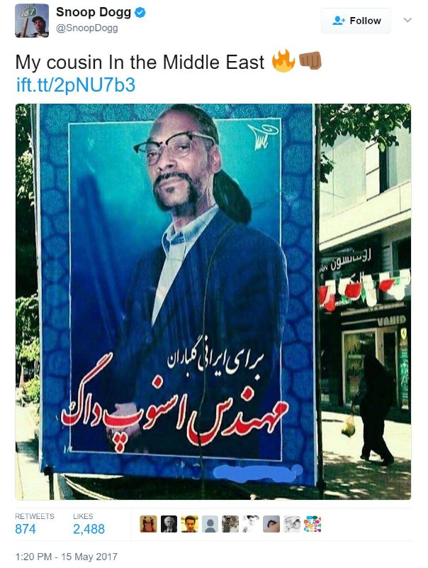 #اسنوپ_داگ اینو رسما توییت کرده گفته پسر عموم تو خاور میانه