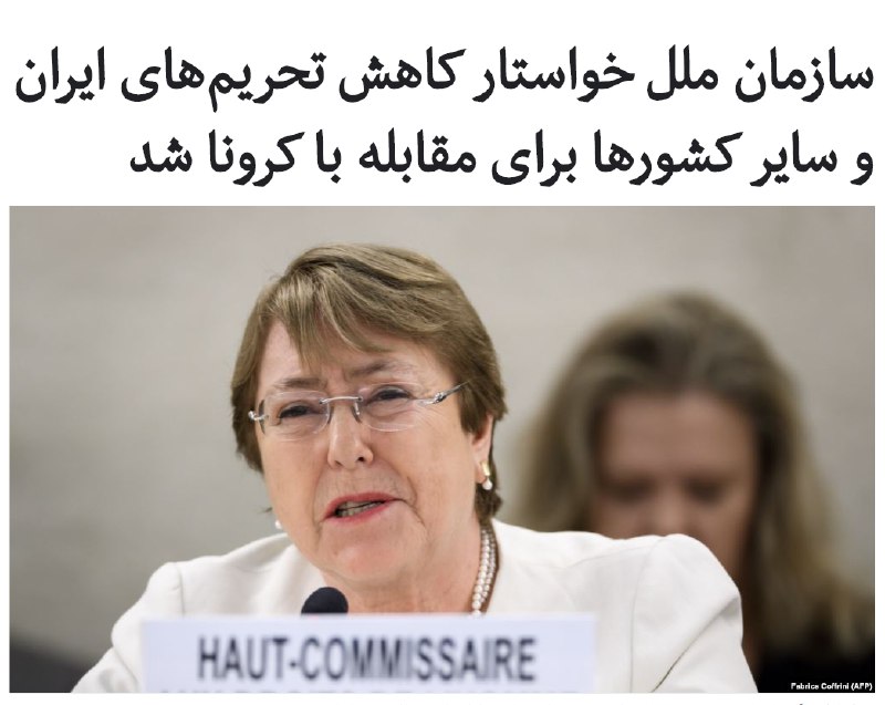 میشل باچله، کمیسر عالی حقوق بشر سازمان ملل، روز سهشنبه پنجم فروردین خواستار «بازبینی سریع» در #تحریمها علیه کشورهایی نظیر ایران شد که با شیوع گستره ویروس کرونا روبرو هستند.