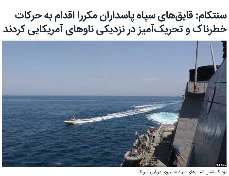 نیروی دریایی آمریکا می گوید قایق های #سپاه پاسداران ایران در خلیج فارس مانورهای "خطرناک" و "آزارنده ای" در نزدیکی کشتی های آمریکایی انجام داده اند.
