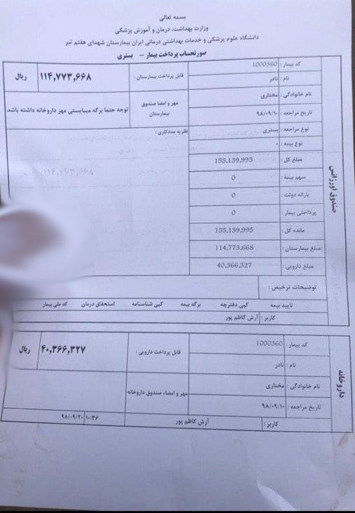 این فرد در توضیحات بیشتر درباره این زندانی گفت که خانواده نادر مختاری روز ۱۴ آذر ۹۸ پس از ۲۰ روز بیخبری، فرزندشان را در حالت کما در بیمارستان شهدای هفت تیر شهرری یافته و «ماموران امنیتی تمام هزینهها را از خانواده دریافت کرده و اجازه ملاقات به آنها ندادند».