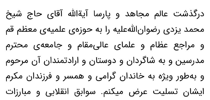"آیتالله #خامنهای در پیام خود به مناسبت درگذشت #محمد_یزدی به همسر او نیز تسلیت گفته است.