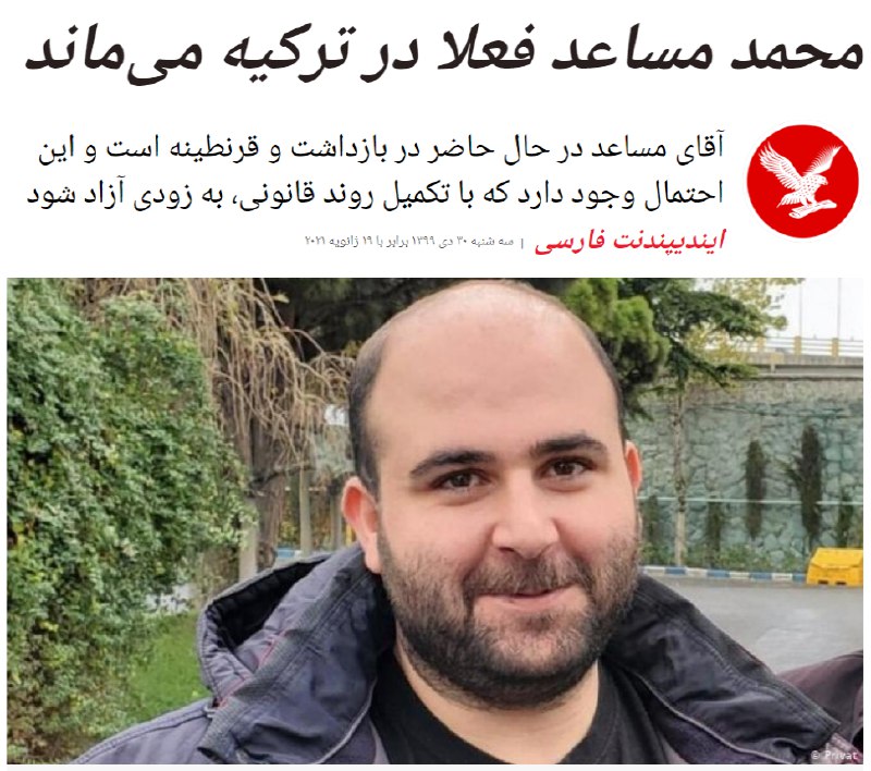 وکیل #محمد_مساعد: وضعیت او خوب است و فعلا خطر دیپورت رفع شده