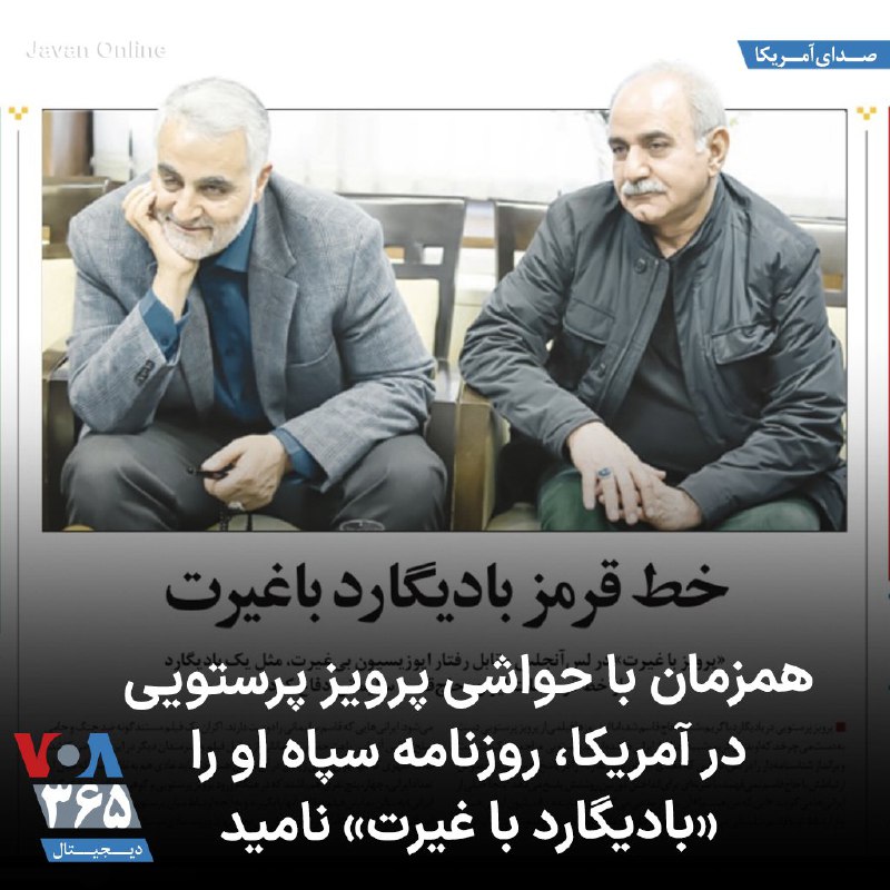 در حالیکه حضور #پرویز_پرستویی بازیگر سینما به خاطر ارتباطاتش با قاسم سلیمانی فرمانده پیشین سپاه قدس که توسط آمریکا کشته شد، با حواشی همراه شده، روزنامه جوان وابسته به #سپاه_پاسداران، با انتشار عکسی از پرویز پرستویی در کنار #قاسم_سلیمانی، این بازیگر را «بادیگارد با غیرت» نامید.