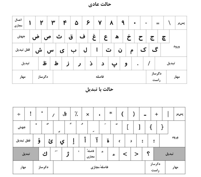 اصلا بقیه تفاوتها هم فقط به حالت Shift («حالت با تبدیل» در عکس پایین) مربوط هستند و صفحهکلید در حالت عادی تفاوت دیگری نداره