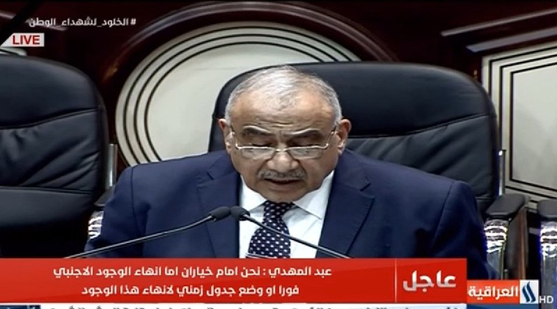 نخست وزیر عراق از پارلمان این کشور خواست اقدامات لازم را برای پایان حضور نیروهای خارجی در عراق انجام دهد. او گفت دولت آمریکا پیاده کردن سیاست "یا با ما یا علیه ما" را آغاز کرده و افزود به نفع آمریکا و عراق است که حضور نیروهای خارجی در عراق پایان یابد.