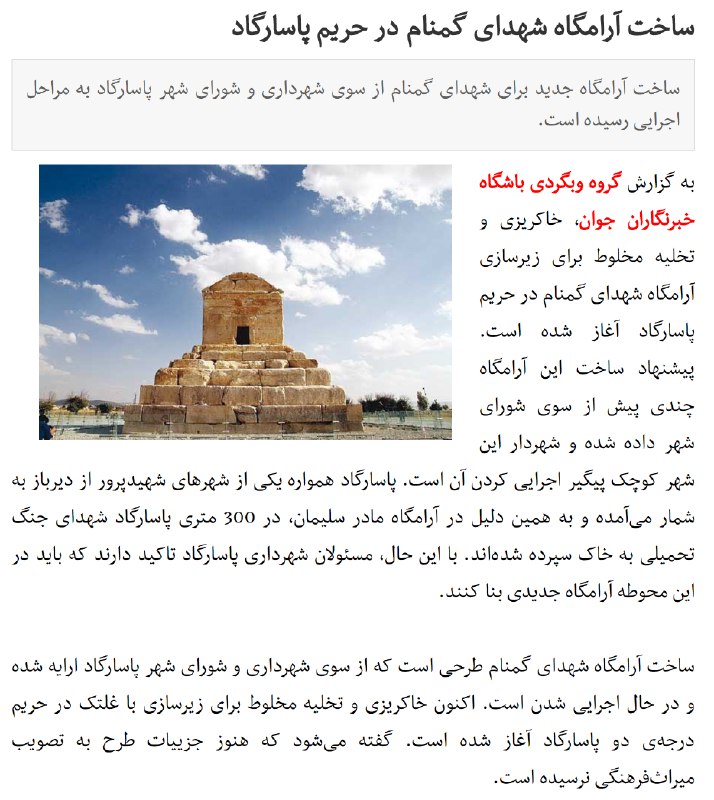 خبر احداث مقبره را مدیر مجموعه پاسارگاد با افتخار اعلام کرده از شما انتظار مدیریت بهتری می رفت