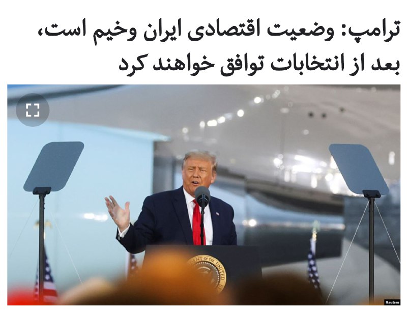ترامپ: ما مطمئن هستیم که ایران بعد از انتخابات برای توافق پا پیش میگذارد. من خودم پیشنهاد دادم که ایران بگذارد برای بعد از انتخابات.