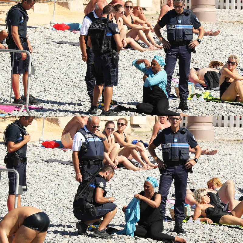 این زن متولد شهر تولوز فرانسه که تنها با نام سیام از او یاد شده گفته در حالی که با دو فرزند خود در ساحل قدم میزده سه مامور پلیس به او گفتهاند پوشش او "صحیح" نیست.