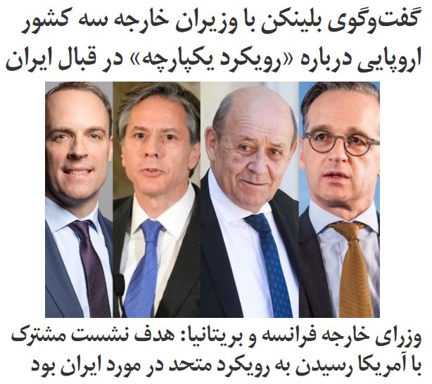 جیک_سالیوان رابرت_مالی نماینده_ویژه_آمریکا_در_امور_ایران آمریکا برجام بریتانیا فرانسه آلمان ایران_آمریکا ساشا_سبحانی عباس_دهقان مجذوبان_نور دراویش_گنابادی علی_مطیری اهواز اعدام انفجار سفارت_اسرائیل هند اسرائیل پرتغال اتانازی پوتین روسیه آمریکا آمریکا_روسیه اتحادیه_اروپا واکسن_کرونا آسترازنکا ایتالیا سلاح عربستان امارات یمن صادرات_تسلیحاتی آمریکا دریای_سیاه مجارستان چین جاوید_دهقانخلد اعدام جیش_العدل سیستان_و_بلوچستان