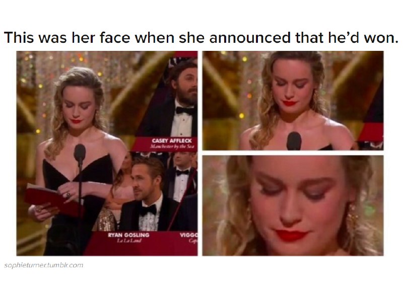 پارسال لارسون برای بازی در نقش یک قربانی تجاوز در فیلم Room برنده اسکار شده بود. لیدیگاگا آهنگش رو خوند و قربانیها اومدن رو استیج موقعی که میخواستند برند بری لارسن ایستاد و هر کدومشون رو تک تک بغل کرد. بری لارسن خیلی فعاله توی کمک به قربانیان #تجاوز و آزار جنسی