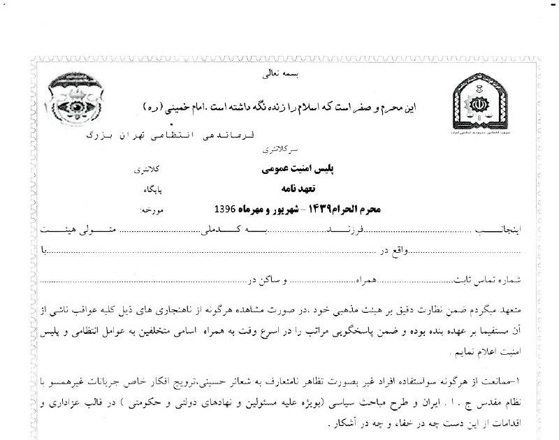 متولیان هیاتهای مذهبی برای برپایی عزای حسینی،بایدباامضای این #فرم تعهداتی برای عدم انجام(یاحتی وقوع)اموری بدهندکه بخودی خودمنع قانونی ندارد/