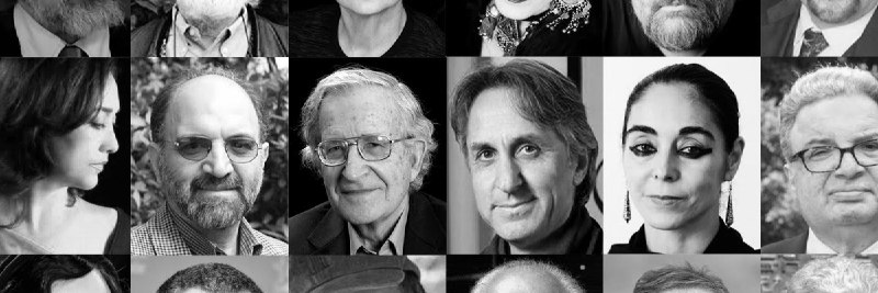 در این نامه اسامی نوام چامسکی، اسلاوی ژیژک، جودیت باتلر، فردریک جیمسن، چارلز تیلور، عبدالکریم سروش، یرواند آبراهامیان، همایون کاتوزیان، داریوش آشوری، ترانه علیدوستى، پرویز تناولى، مانى حقیقى و شیرین نشاط به چشم می‌خورد.