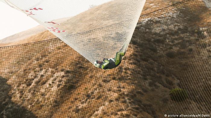 لوک #آیکینس، #چترباز و #ماجراجو ی آمریکایی شنبه گذشته پس از دو دقیقه و اندی #پرش_آزاد از ارتفاع ۷۶۰۰ متری بر فراز صحرای کالیفرنیای جنوبی در نزدیکی لس آنجلس بر توری بزرگ فرود آمد. این #تور آماده شده بود تا از برخورد شدید او با زمین جلوگیری کند. در ابعاد ۳۰ متر در ۳۰ متر در ارتفاع ۶۰ متری از زمین