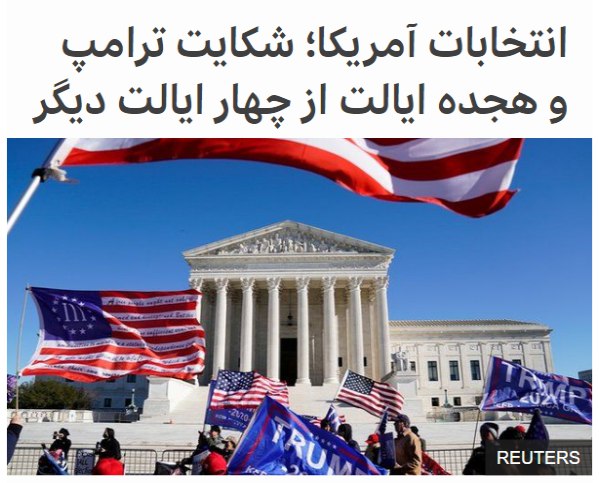 دونالد #ترامپ و هفده ایالت آمریکا به شکایت ایالت #تگزاس از چهار ایالت کلیدی پیوستهاند که جو بایدن در آنجا پیروز رقابتهای ریاست جمهوری بوده است. آنها با هدف تغییر نتیجه انتخابات، شکایتشان را به دیوان عالی آمریکا بردهاند.
