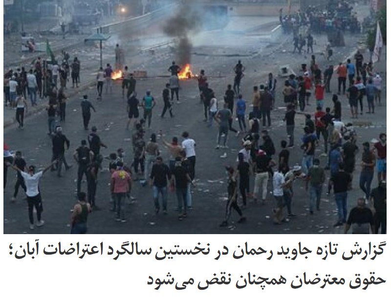 همزمان با اولین سالگرد اعتراضات #آبان۹۸ جاوید رحمان، #گزارشگر_ویژه سازمان ملل در امور حقوق بشر ایران، در تازهترین گزارش خود اعلام کرد جمهوری اسلامی به جای پاسخگو کردن مسئولان سرکوب اعتراضات پارسال، همچنان به نقض جدی حقوق معترضان ادامه میدهد.