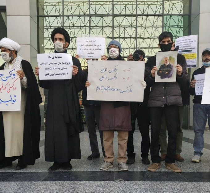 با این شعارها روبروی #وزارت_بهداشت برای جلوگیری از واکسیناسیون ضد کرونا تجمع کردهاند: