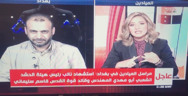 علی هاشم خبرنگار بیبیسی میگوید منابعش گفتهاند قاسم سلیمانی و ابومهدی المهندس در کاروانی بودهاند که نزدیک فرودگاه بغداد به آن حمله شده. او ننوشته که کشته شدهاند.