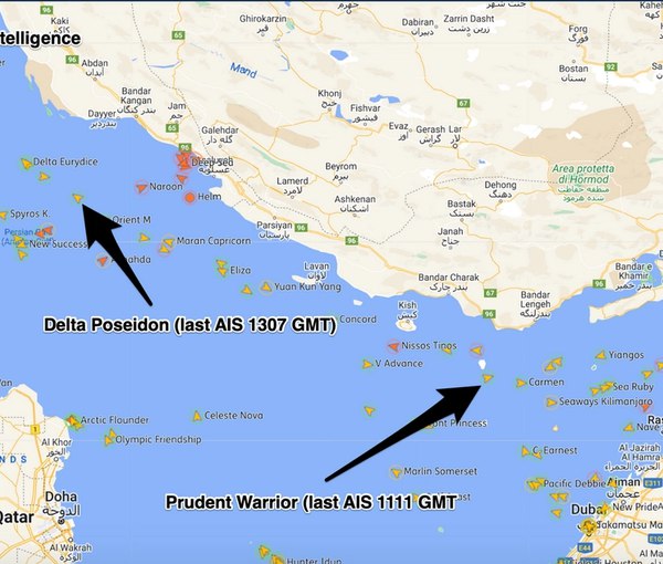 #ايران: وبسایت لیست لویدز اعلام کرد نیروهای نظامی جمهوری اسلامی دو نفتکش با پرچم یونان را در آبهای خلیج فارس توقیف کردند. پیشتر نورنیوز تهدید کرده بود جمهوری اسلامی در پی توقیف نفتکش ایرانی توسط دولت یونان و در اختیار دادن نفت آن به آمریکا، تصمیم به اقدام تنبیهی علیه یونان گرفته