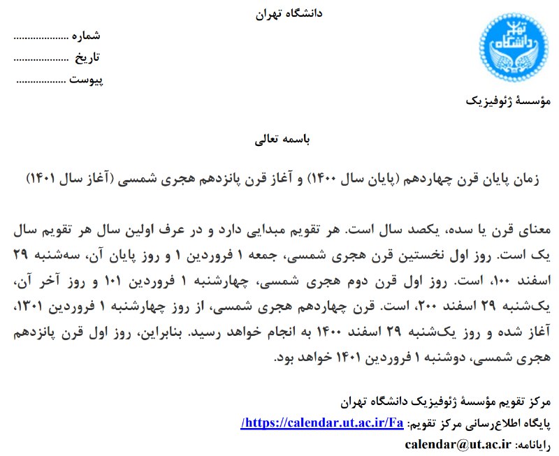 دانشگاه تهران هم تایید کرد ۱۴۰۰ سال اول قرن جدید نیست.