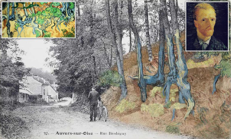 یک #کارت_پستال متعلق به حدفاصل سالهای ۱۹۰۰ تا ۱۹۱۰ (تصویر اصلی پایین) به محققان کمک کرد تا مکان به احتمال قوی آخرین تابلو ونسان ون گوگ (تابلوی #ریشه_درختان، گوشه چپ تصویر پایین) را در حوالی روستای 'اور سور اواز' در شمال پاریس پیدا کنند. این محل در ۱۵۰ متری مسافرخانهای است که #ون_گوگ در سال ۱۸۹۰ و برای ۷۰ روز پیش از آن که خودکشی کند در آن اقامت کرده بود. 🔗
