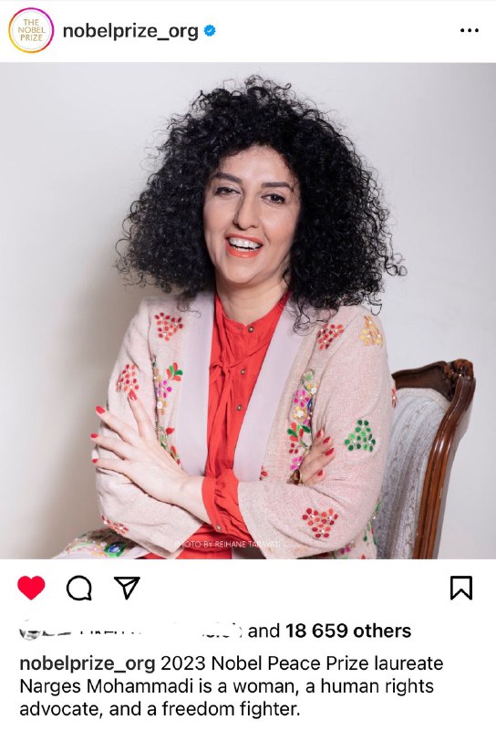کمیتۀ نوبل نروژ تصمیم گرفت جایزه صلح نوبل سال ۲۰۲۳ را به نرگس محمدی به دلیل مبارزه با سرکوب زنان در ایران و مبارزه برای ارتقای حقوق بشر و آزادی برای همه اهدا کند.