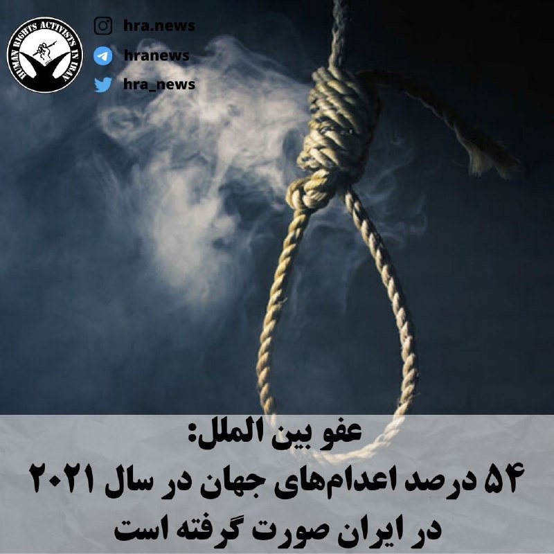 عفو بین الملل می گوید؛ ۵۴ درصد اعدامهای جهان در سال ۲۰۲۱ در ایران صورت گرفته است.