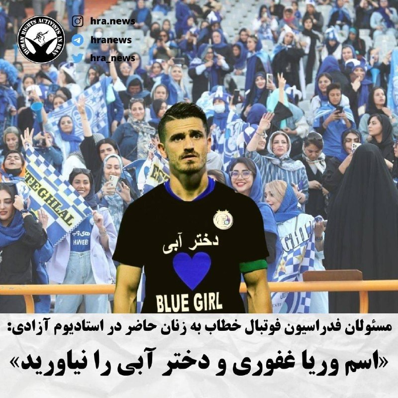 "نگار"در این رابطه گفت: "به ورزشگاه که رسیدیم، چند نفری از مسئولان فدراسیون فوتبال آمدند و گفتند اسمی از #سحر_خدایاری، #دختر_آبی و البته #وریا_غفوری نیاورید. آنها را تشویق نکنید تا دردسری درست نشود و بتوانیم برای بازی های بعدی هم مجوز ورود را راحت بگیریم"./۲