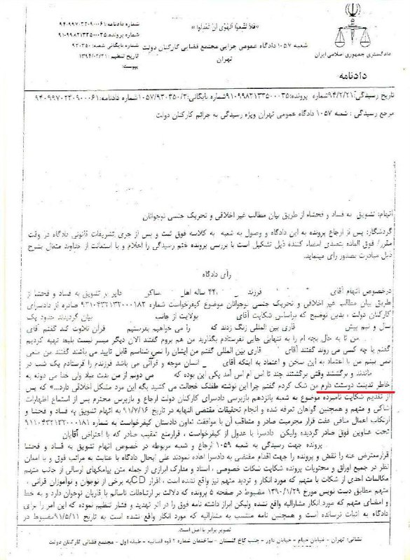 دادگاه تجدیدنظر توی حکم نوشته حتی اگر ایشان با این کودکان #ملاعبه هم کرده باشد نمیتواند به معنی مجرمیتش باشه!