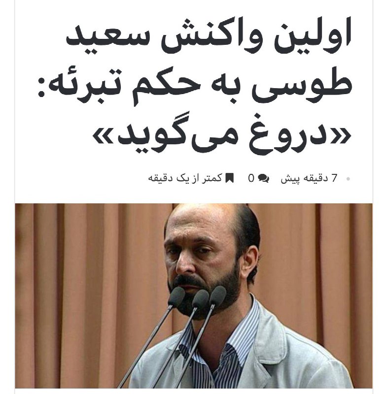 بعضی از کاربران توییتر در شرح این توییت نوشتند: #سعیدطوسی تبرئه شد.