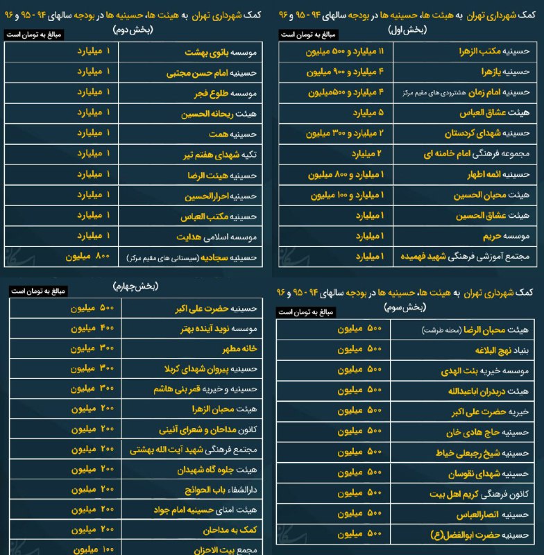 لیست کامل بودجه هیاتها و حسینیه ها طی۳سال گذشته منتشر می شود