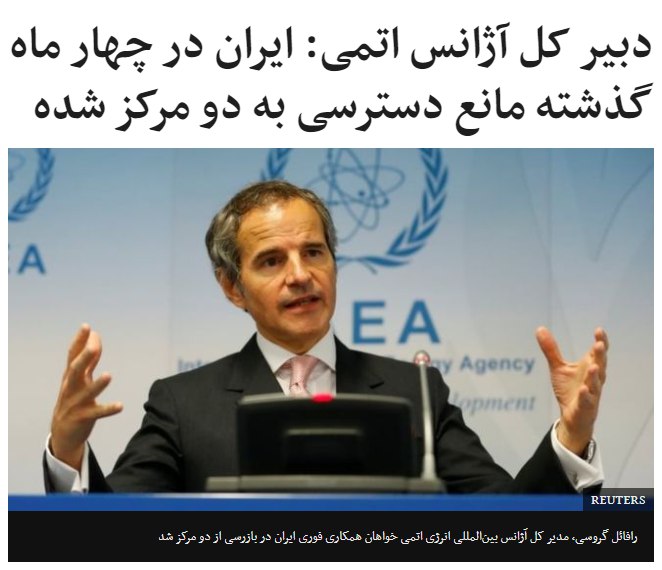 آقای گروسی گفت بیش از چهار ماه است که ایران اجازه دسترسی به این دو مرکز را نداده و افزود که حدود یک سال است که جمهوری اسلامی از "گفتوگوی جدی درباره سوالات مربوط به فعالیتها و مواد #هستهای اعلامنشده احتمالی" در این مراکز امتناع میکند.