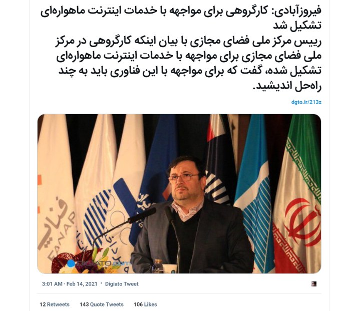 #ابوالحسن_فیروزآبادی: کارگروهی برای مواجهه با خدمات #اینترنت_ماهوارهای تشکیل شد