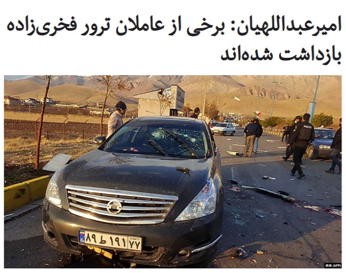 حسین امیرعبداللهیان، دستیار رئیس مجلس ایران در امور بین‌الملل خبر داد که برخی از «عاملان» ترور محسن #فخری‌زاده، چهره ارشد برنامه هسته‌ای جمهوری اسلامی، «شناسایی و دستگیر شده‌اند».