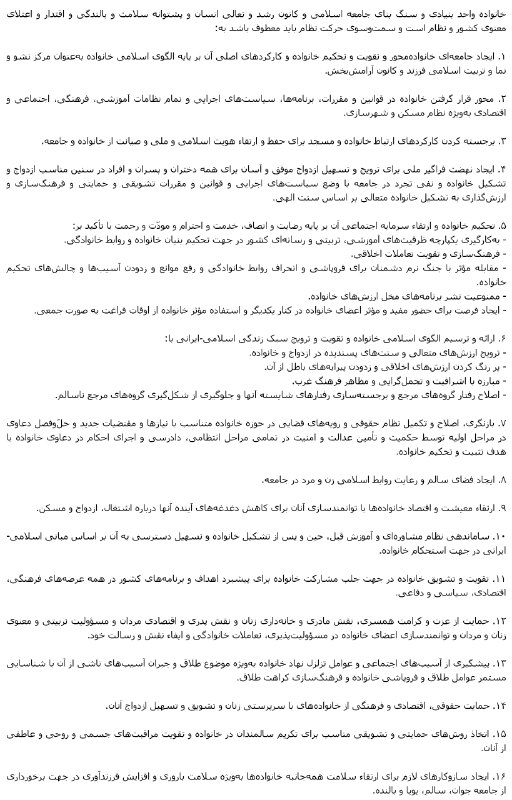 محور اصلی این سیاستها ایجاد جامعه #خانوادهمحور بر پایه الگوهای #اسلامی و جلوگیری از فروپاشی خانوادهها است.