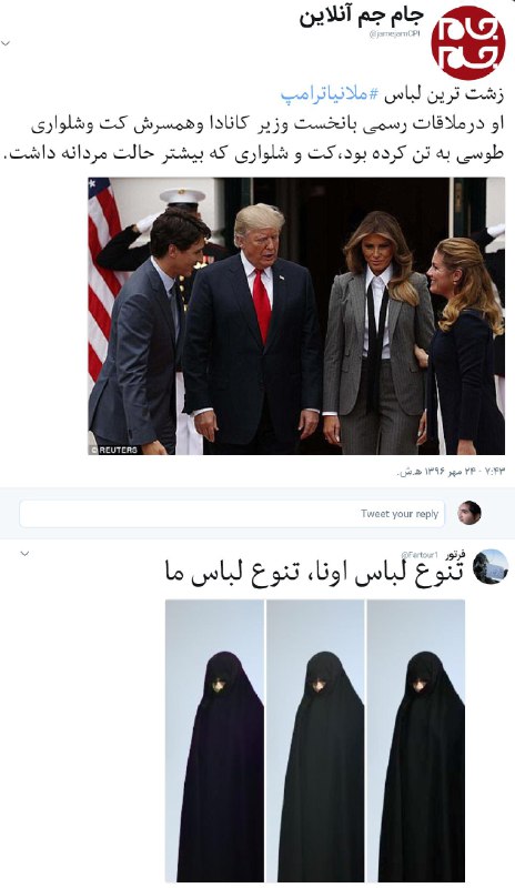 واکنشهایی بود به توییت «موسسه فرهنگی مطبوعاتی جامجم» درباره زشتی و زیبایی لباس همسر مقام اول سیاسی یک کشور و دلیلش: