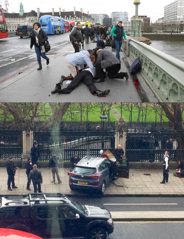 بنظرمیرسد سیر حادثه بدین ترتیب بوده: دو مهاجم با خودرو(تصاویر) حداقل 12 نفر را در نزدیکی پارلمان انگلیس زیرگرفته و سپس با دیوار برخورد کردند