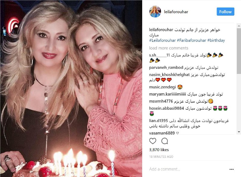 #لیلافروهر با انتشار عکسی تولد خواهرش را تبریک گفت.
