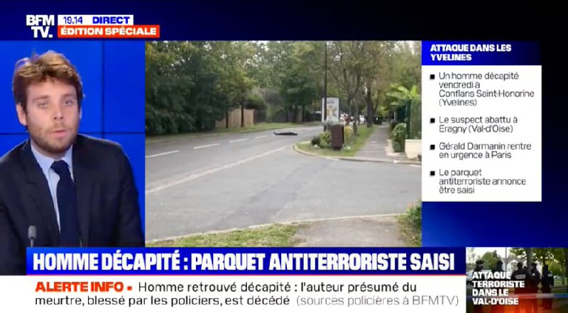 این حمله ساعت پنج عصر به وقت محلی در شهر کنفلان سنتاونورین در شمال غربی پاریس پایتخت فرانسه روی داده است.