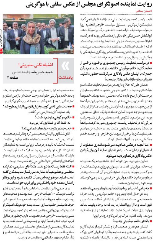 رفتارزشت نمایندگان برای عکس با #موگرینی رامتاسفانه اکثردوستان نمیخواهند به اهمیت شخصیت سیاسی وجهانی موگرینی ربط بدهند،تقلیل به کشش جنسی چرا!؟