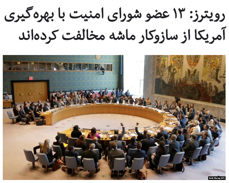 خبرگزاری رویترز میگوید نامههایی را مشاهده کرده که ۱۳ عضو از ۱۵ عضو دائمی و غیر دائمی شورای امنیت سازمان ملل، در مخالفت با بهرهگیری آمریکا از سازوکار موسوم به ماشه برای بازگرداندن تحریمهای بینالمللی علیه ایران، ارائه کردهاند.
