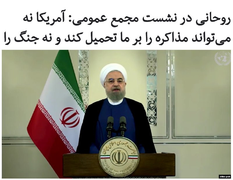 حسن #روحانی که روز سهشنبه اول مهر در هفتادوپنجمین نشست مجمع عمومی #سازمان_ملل به صورت ویدئویی سخنرانی میکرد، با بیان اینکه «ملت ایران شایسته تحریم نیست» اظهار داشت: «هر دولتی که در آمریکا انتخاب شود، به ناچار تسلیم تابآوری ملت ایران خواهد شد».