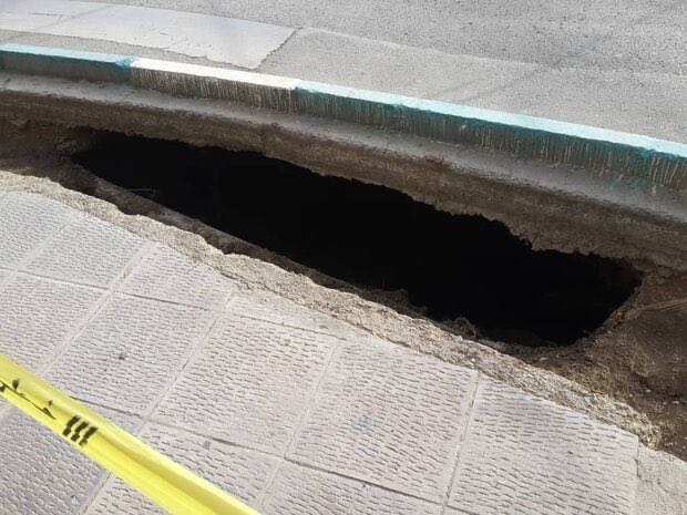 صبح امروز در مسیر جنوب به شمال خیابان سپاه بعد از خیابان انقلاب، نشست زمین رخ داده است_صداوسیما