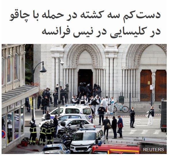 امانوئل مکرون، رئیسجمهوری فرانسه کشته شدن سه نفر در کلیسایی در شهر نیس را #تروریسم #اسلامگرایی خوانده و آن را محکوم کرده است.