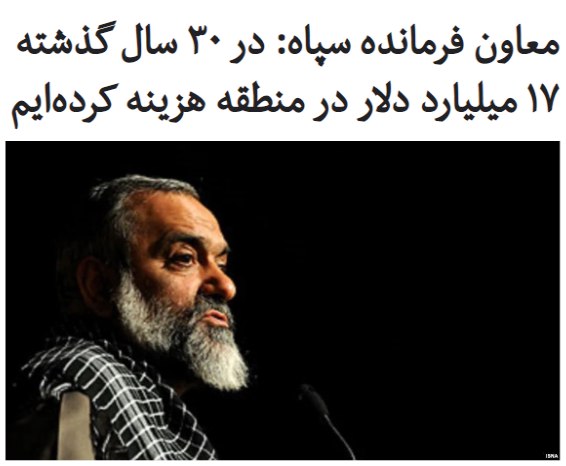 #محمدرضا_نقدی، معاون هماهنگکننده #سپاه پاسداران گفته است که حکومت ایران در ۳۰ سال گذشته «۱۷ میلیارد دلار برای همه فعالیتها از جمله دیپلماسی، کار فرهنگی و دفاعی در منطقه هزینه کرده است».