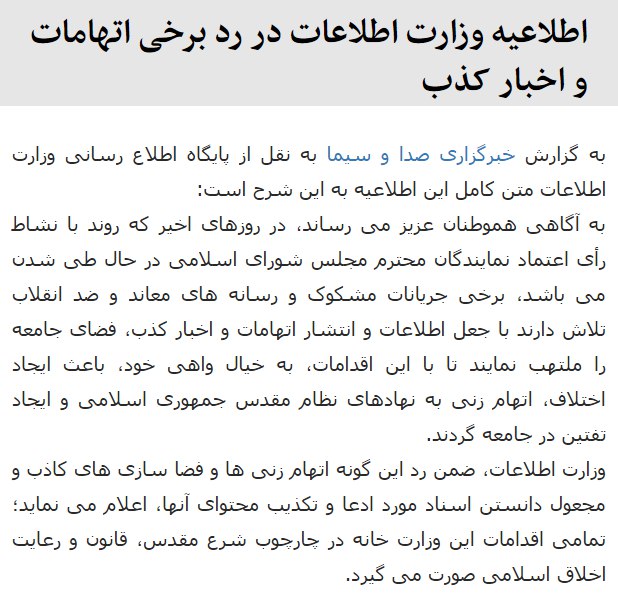 #وزارت_اطلاعات اطلاعیه داده در «رد برخی اتهامات و اخبار کذب» بدون اینکه بگه چی رو داره تکذیب میکنه: بدونید یک چیزهایی که نمیدونید چیه دروغه!
