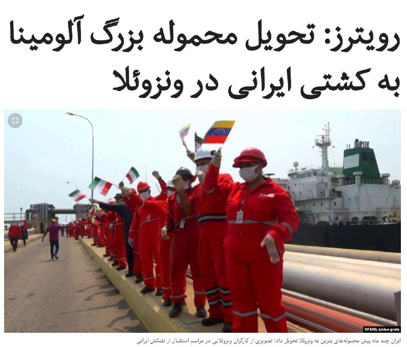 خبرگزاری رویترز از قول سه منبع مطلع گزارش داده است که در ماه اوت یک کشتی متعلق به شرکتی ایرانی ۱۴ هزار تن #پودر_آلومینیوم (آلومینا) از #ونزوئلا تحویل گرفته است.