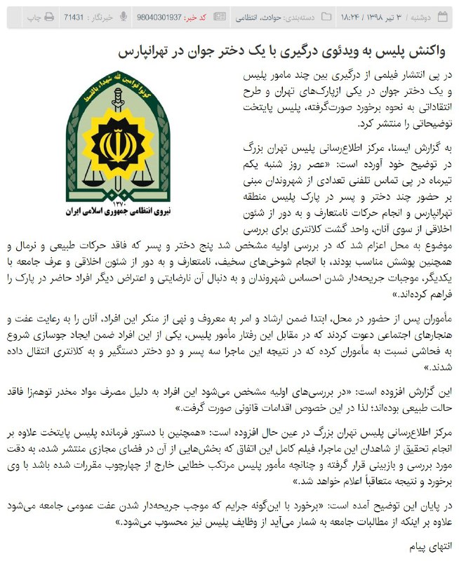 معاون اجتماعی #نیروی_انتظامی اون ویدیو رو دیده گفته بذار داستانش رو با چلوکباب تو اخبار بگم